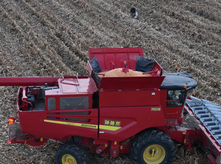 MILE米乐自主研发的7850谷物收割机,高效多能、喂入量大。