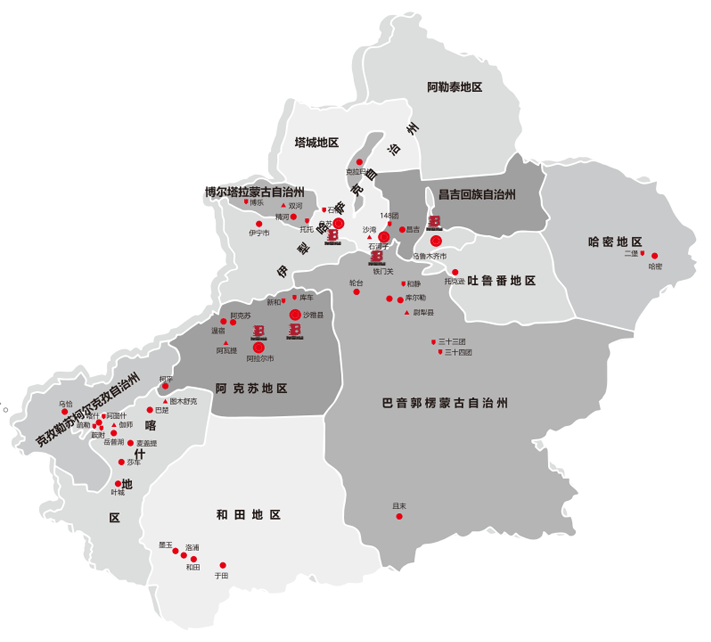 4S店(直营店):尉犁、双河、阿瓦提、喀什、沙湾、图木舒克、伽师。